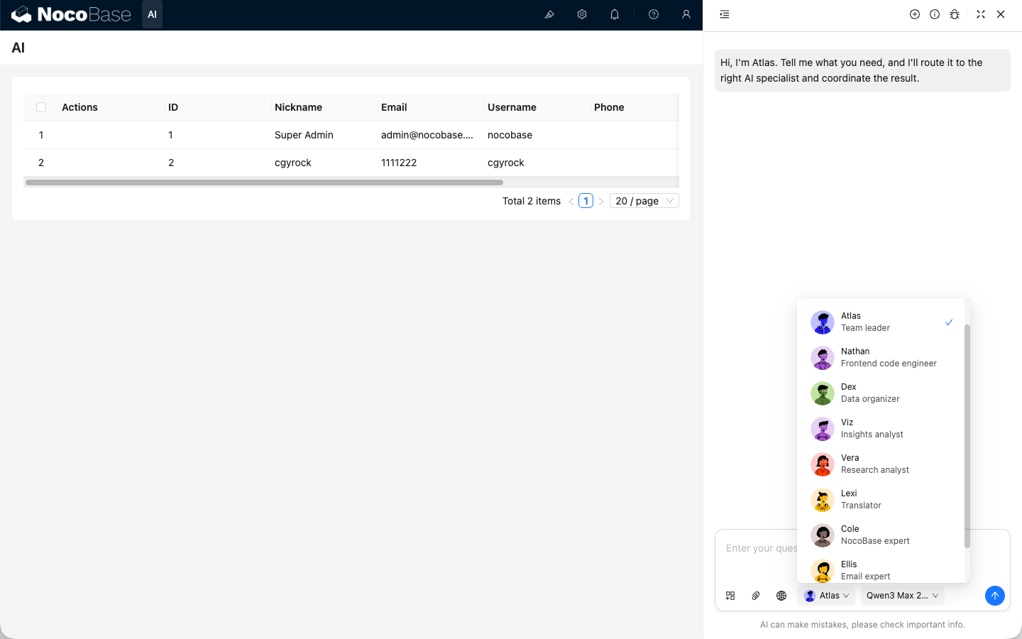 After creating and enabling AI Employees, you can collaborate with them in pages.